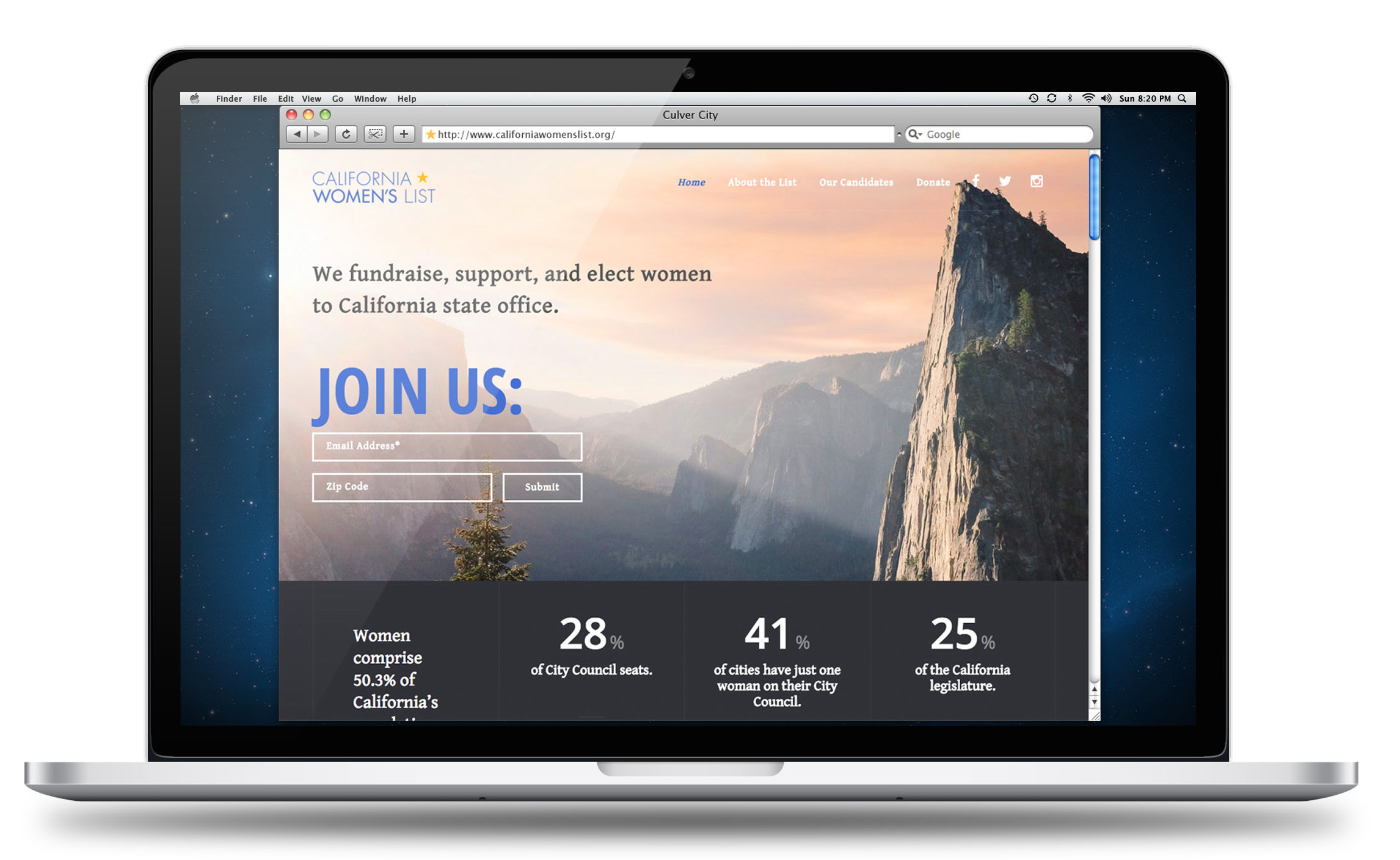 As the Director of Media & Content at the California Women’s List, I was responsible for the political action committee’s branding and site design. Click here to visit californiawomenslist.org.